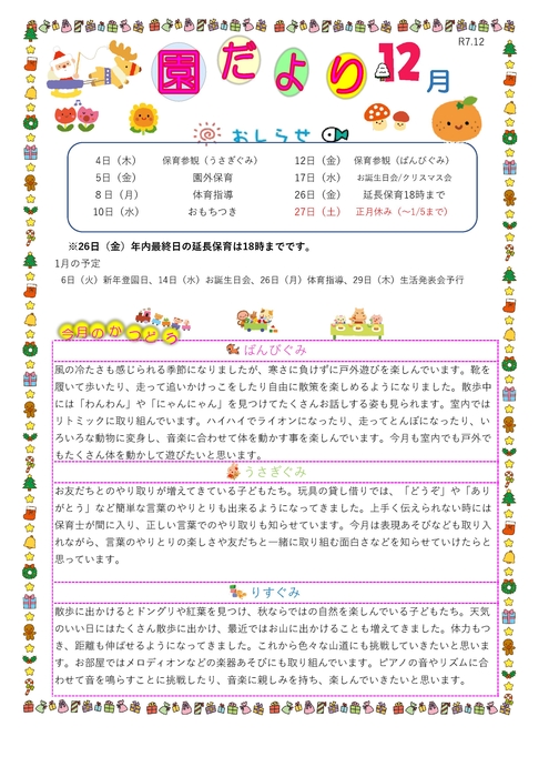 12月こもれび園だより